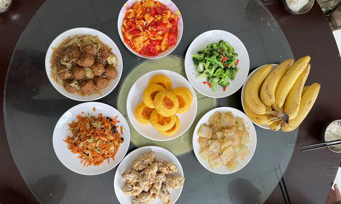 晚餐:兩葷兩素一(yi)湯、米飯/饅頭。